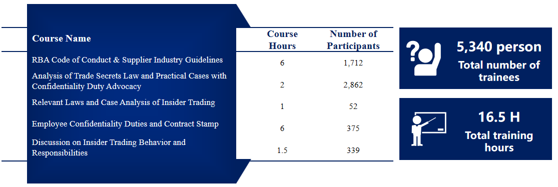 To further ensure the implementation of corporate integrity, all employees sign an “Integrity Commitment Letter”. An internal audit mechanism is in place to prevent bribery and corruption from occurring during business activities. The Group also requires all suppliers to sign a “Supplier Integrity Commitment Letter,” clearly outlining the rights and obligations of both parties in the contract and requiring adherence to integrity standards.